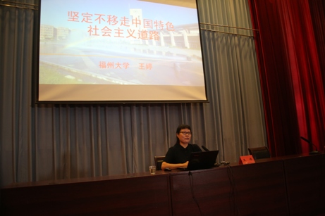 会上,来自福州大学经济与管理学院的王婷教授为全体党员作了题为《坚定不移走中国特色社会主义道路》的“两学一做”专题讲座。王婷教授从中国特色社会主义道路、理论体系和制度的丰富内涵、辩证关系方面,紧扣建设中国特色社会主义总依据、总布局、总任务,阐述了夺取中国特色社会主义新胜利的八个“坚持”内容,加深了院全体党员对中国特色社会主义的理解,对学院深入开展“两学一做”学习教育具有一定的指导作用。