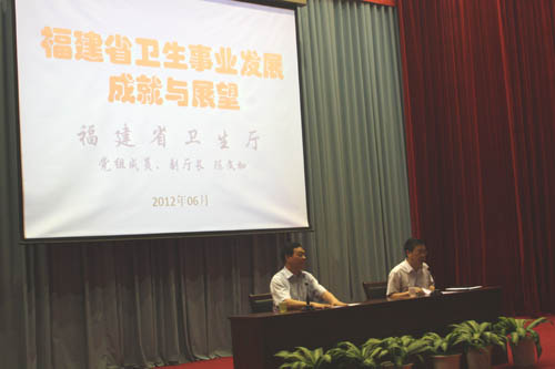 报告会上,陈文加副厅长回顾了中华人民共和国成立以来福建卫生事业的发展状况,特别是近年来我省卫生事业取得的新成就,新农合制度不断完善和发展,基本药物制度全面实施,基层医疗卫生服务体系进一步健全,公共卫生服务能力持续增强,公立医院改革稳步推进。陈文加副厅长在分析了我省卫生事业面临的形势和挑战后,展望了我省卫生事业发展前景,着重介绍了我省卫生工作“十二五”发展专项规划。