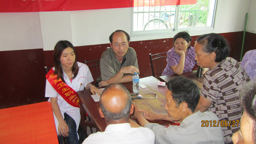 6月27日,实践团队一行14人(其中学院老师6人,附属医院医生1人,学生7人)在魏立娜副院长的带领下,经过5个小时的行程,顺利到达川石乡后,即在川石乡川石村村部设置义诊点,开始了本次的社会实践。来自我院附属省级机关医院的专家首先为当地的老百姓做了一堂深入浅出的健康教育讲座,而后又开展了体检义诊赠药和医保宣传、献血控烟宣传等活动,前来咨询的群众络绎不绝,现场气氛热烈。次日早晨,实践团队在川石乡相关领导的陪同下,深入川石乡更加偏僻的边溪村,考察基层的卫生资源状况并进行义诊体检赠送药品活动。