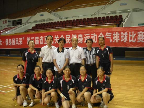 由我院胡丽芳、 阮秋容、倪捷、黄跃、刘丽萍、陈筱瑜、邓素华、林燕8位组成的女子气排球队代表省卫生厅参加2012年省直机关全民健身运动会女子气排球比赛,她们齐心协力、顽强拼搏、连克强队,打出了高水平,取得了七战六胜的好成绩,荣获一等奖。 院工会以高度的责任感和使命感认真做好这次参赛组织工作,队员们克服教学任务重、时间紧、场地条件差、气候炎热的困难,利用课余和周末时间刻苦训练,圆满地完成了省卫生厅交给的任务,为卫生系统赢得了荣誉,也展示了福建卫职院教师的英姿风采。 (院工会)