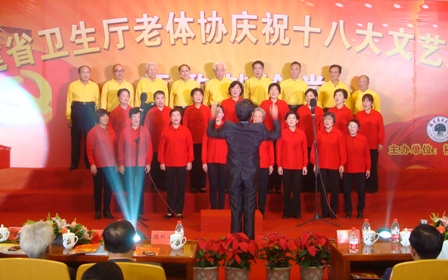 此次,参加汇演节目由省卫生厅老体协在厅直机关离退休老同志文艺团体中筛选,并经过文艺汇演评审领导组预选出来的。我院组织离退休老同志排练参演的合唱节目《夕阳红》、《再唱山歌给党听》,充分地展示了离退休老同志喜迎十八大的振奋精神,生动地体现了老同志老有所学、老有所乐、老有所为和积极向上的精神风貌,表达了我院广大教职员工庆祝党的十八大胜利召开的喜悦之情,并衷心祝福祖国在党的领导下更加繁荣富强。 (人事处)