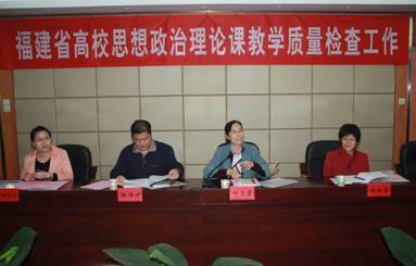 2012年11月22日下午,由福建农林大学马克思主义学院院长叶飞霞教授任组长,福建工程学院思政部主任杨伟才教授、福建师范大学马克思主义学院院长助理杨林香副教授、省委教育工委宣传部欧阳迪莎主任科员任组员的检查组一行4人莅临我院,对我院思想政治理论课教学质量进行检查指导。学院党委陈雄副书记、廖伟坚副院长、黄开良副院长、魏立娜副院长,党委工作部、教务处、学生工作处、人事处、科研处、财务处、团委、各系部党总支等相关职能部门负责人,思想政治理论课教研部党政领导和全体思想政治理论课教师参加了汇报会和专家反馈会。会议由廖伟坚副院长主持。