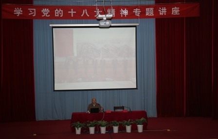 2012年12月18日下午,我院邀请中共福建省委党校雷弯山教授来校举办“学习宣传贯彻党的十八大精神”专题讲座。讲座由院党委副书记陈雄同志主持,在家院领导、全体教职员工、系部学生入党积极分子三百多人参加了学习。