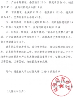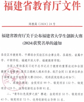近日,福建省教育厅公布福建省大学生创新大赛(2024)获奖名单。我校报送的参赛项目《芯眠-情绪睡眠智能调节引领者》项目获得银奖、《智慧助盲——新型视障人士出行领航者》项目获得铜奖。