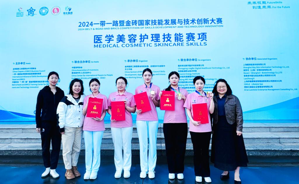 10月27日,2024“一带一路”暨金砖国家技能发展与技术创新大赛医学美容护理技能赛项决赛在陕西西安落下帷幕,来自全国24所高职高专院校医学美容技术相关专业在校学生共200余人参加比赛,经过线上选拔赛的筛选,共60名选手进入决赛。我校医学美容技术专业的5名同学凭借扎实的专业知识与精湛的实操技能荣获一等奖1项、二等奖1项、三等奖1项、优秀奖2项,我校荣获“最佳组织奖”。