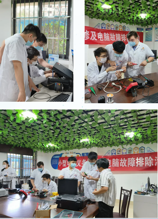专业教师联合医学技术与工程学院第二党支部多次前往闽侯世茂小区、火车站东浦社区、火车站八闽第一站、三明尤溪、三明明溪、三明洋中等地开展小型电器义务维修及电脑故障排除社会实践活动,拓展学生的实践技能。