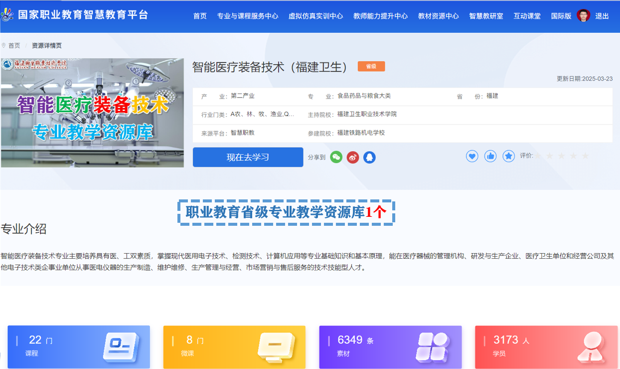 智能医疗装备技术专业创办于2011年,为全国药品职业教育教学指导委员会医疗器械类专委会委员单位、全国高等职业学校校长联席会议双创教育专委会委员单位、全国医疗装备技术服务行业产教融合共同体理事单位、福建省医疗器械行业协会副会长单位,旨在培养具有工匠精神和信息素养,能够从事智能医疗装备软硬件安装调试、装备应用和故障分析排除、按照装备操作规范进行质量检测等工作的高素质技术技能人才,为福建省高水平高职专业群重点建设专业。专业拥有一支经验丰富的“双师型”硕博教学创新团队,与多家医疗器械公司签订合作协议。2024年荣获福建省职业教育教学成果奖一等奖。