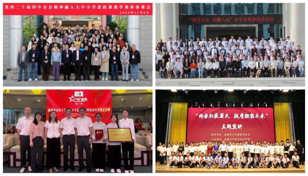 深耕红医文化育人,打造特色课程体系,开设《红医薪火》《做雷锋式白衣天使》等特色课程,深挖福建红医精神内涵,传承苏区医者初心。每年举办课程思政教学设计竞赛,斩获国家级课程思政示范课程1门、省级44门,获评国家级课程思政教学团队1个、教学名师5人。在“一‘马’当先”知识竞赛等省级以上赛事中累计获奖27项,其中省“一‘马’当先”知识竞赛获团体总分第二名。精心打造马克思主义讲坛品牌,邀请专家开展红医精神、劳模精神宣讲,建成12家“大思政课”实践基地,相关工作获新华网、人民网等主流媒体近40篇专题报道,思政育人影响力持续彰显。