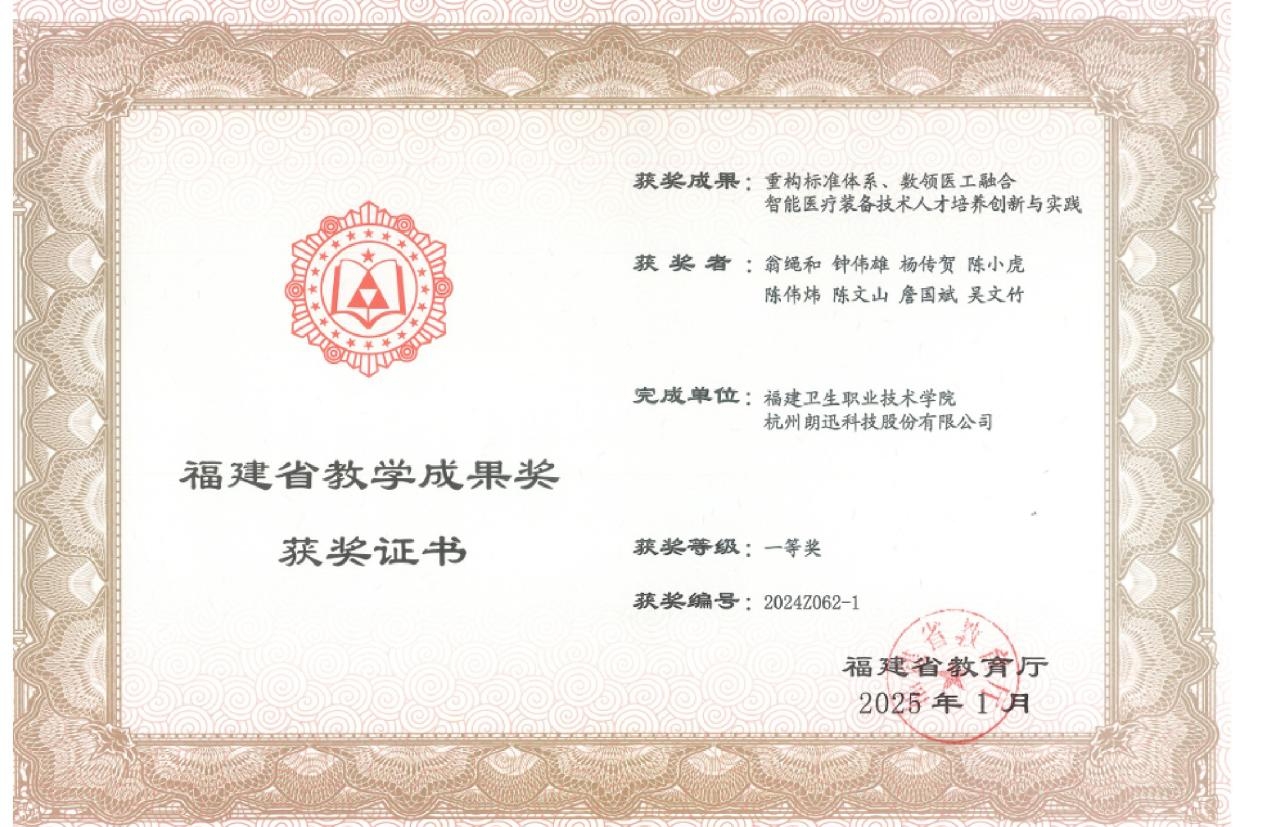 适应职教改革,组群促发展。升格为二级学院,奋力建设福建省高水平高职专业群——医学检验技术专业群。群内专业增至5个,参与国家级专业教学资源库和专业教学标准建设各1个,建设省级层次的专业教学资源库2个、在线精品课程5门、课程思政项目10项、终身教育等课程2门、教改课题2个、教改案例2个等,获2024年省级教学成果奖一等奖。