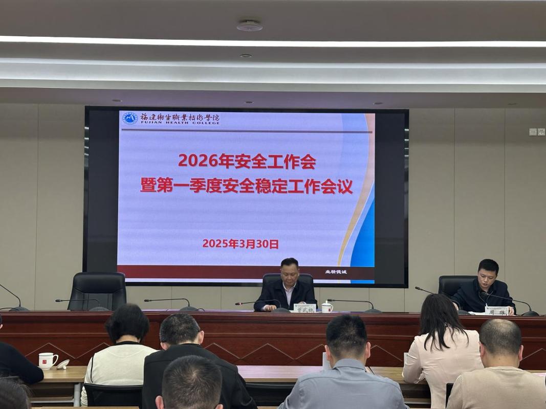 为深入贯彻落实省教育厅关于校园安全工作的最新要求,分析当前形势,部署全年重点任务,全力推进高质量“平安校园”创建工作,3月30日,学校组织召开2026年第一季度安全稳定工作会议。校领导、各部门党政负责人参加会议,会议由副校长周雄主持。