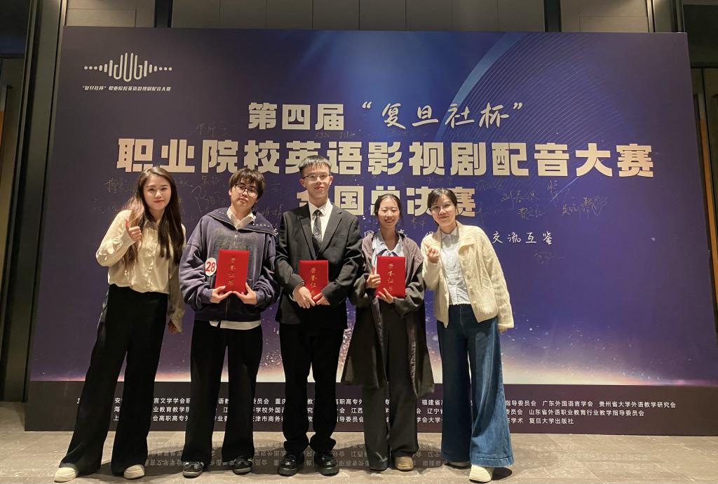 近日,第四届“复旦社杯”职业院校英语影视剧配音大赛全国总决赛在山东青岛圆满落幕。来自全国28支代表队同台竞技,我校吴桐、颜祖琴、苏龙康三名同学在林洪杉、黄海云两位老师的指导下,沉着应战、默契协作,凭借流利的英语表达与生动的角色演绎,从全国众多参赛队伍中脱颖而出,荣获大赛二等奖第二名,展现了我校学子扎实的英语素养与卓越的综合能力!