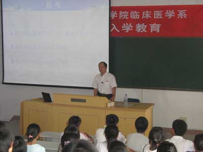 9月3日,在临床医学系的第二阶梯教室,由临床医学系林志明常务副主任主持召开了2008级新生入学教育。临床医学系主任魏真主任医师从学校及学院概况、课程设计、学业要求等几个方面的阐述让新同学对自己所学的专业有了全面的认识。