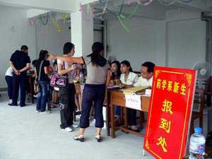 2007年9月5日新生报到日,福建卫生职业技术学院的校园,到处是有条不紊忙碌的身影,到处飘溢着喜气洋洋与欢声笑语。为落实陈明非院长提出的“给新生以温馨家园的感觉”要求,药学系为方便新生办理报到手续,将“药学系新生报到处”设在了明湖湖畔10号学生公寓楼下,简化报到程序,实现了方便快捷式服务。为体现人性化服务,药学系还在报到现场专门设立了新生家长休息处、系领导现场办公处、咨询处、新生报到绿色通道,分别由欧春木书记等系领导、辅导员、老师亲自接待并予以咨询解答。为做好新生接待工作,系部精心组织,大家明确分工、密切配合,气氛热烈。青年志愿者们热情地接待新生,引导新生,帮助新生办理报到手续,帮他们提行李、安排宿舍,各项工作有条不紊地进行。下午,系学生会主席姜菲菲同学带领系两委会,分组到新生宿舍进行慰问,对新生及家长所提出的问题一一做了解答。整个报到过程高效快捷、井然有序,受到了新生及家长们的一致好评。