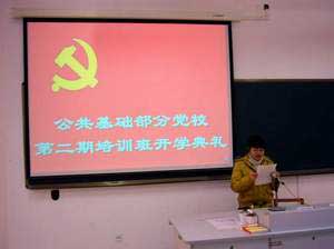 3月20日下午2:00,公共基础部在教学楼309教室隆重举行了业余分党校第二期培训班开学典礼,系主任陈新老师、党总支书记洪聿荣老师,辅导员张梦全、叶文伟、陈洁以及全体培训班学员出席了开学典礼,开学典礼由林速容老师主持。