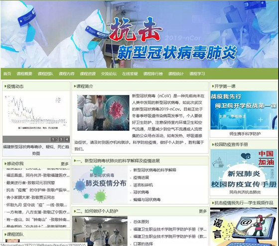 近日,一门紧扣当下疫情防控的网络课程《抗击新型冠状病毒肺炎——新型冠状病毒的个人防护与学校卫生》现身“天使之城”学习平台,供福建卫生职业技术学院学生在线学习。这门课程是学院管理系教师联合预防医学教研室,利用预防医学专业优势开发而成。