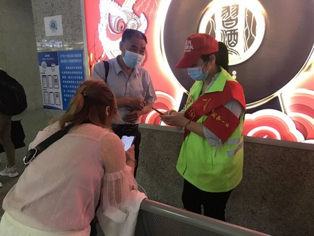 ▲今年5月起,福建卫职院医技系党总支就组织党员老师,在福州火车站参与火车站防疫志愿服务