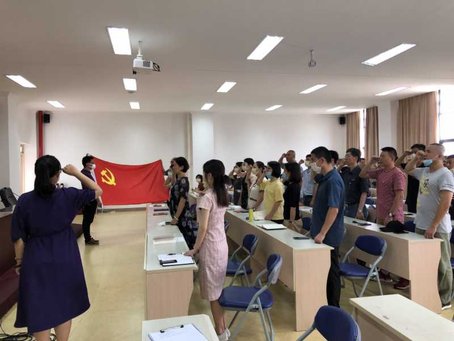 ▲院直机关党总支部召开2020年第二季度全体党员大会,会上41位1~6月入党的同志同过政治生日