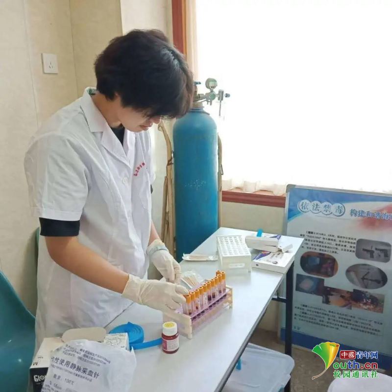 (图为志愿者整理外出检测艾滋病情况抽血样本 中国青年网通讯员 黄慧玲)