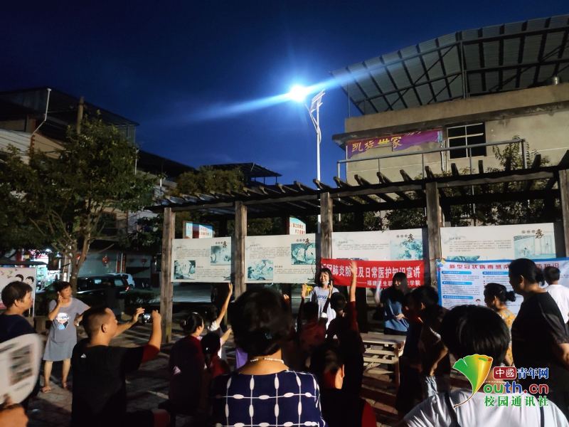 图为志愿者在乡村宣讲疫情防控知识,并提问相关疫情知识问题,村民们踊跃回答。中国青年网通讯员叶莹 摄