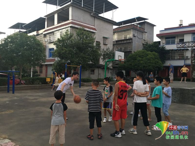 图为志愿者在宣讲的同时,与当地的小朋友互动交流。中国青年网通讯员叶莹 供