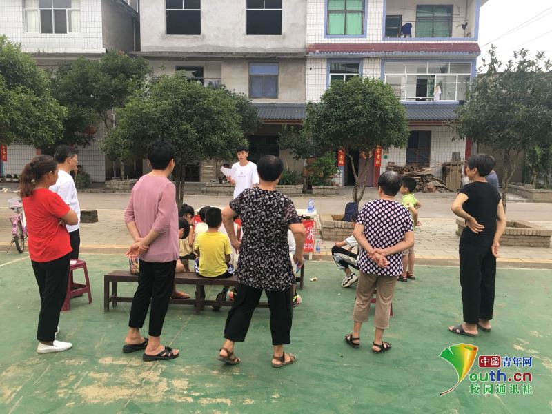 图为志愿者在乡村里宣讲体育保健医护常识,提高村民的自身身体素质。 中国青年网通讯员叶莹 供