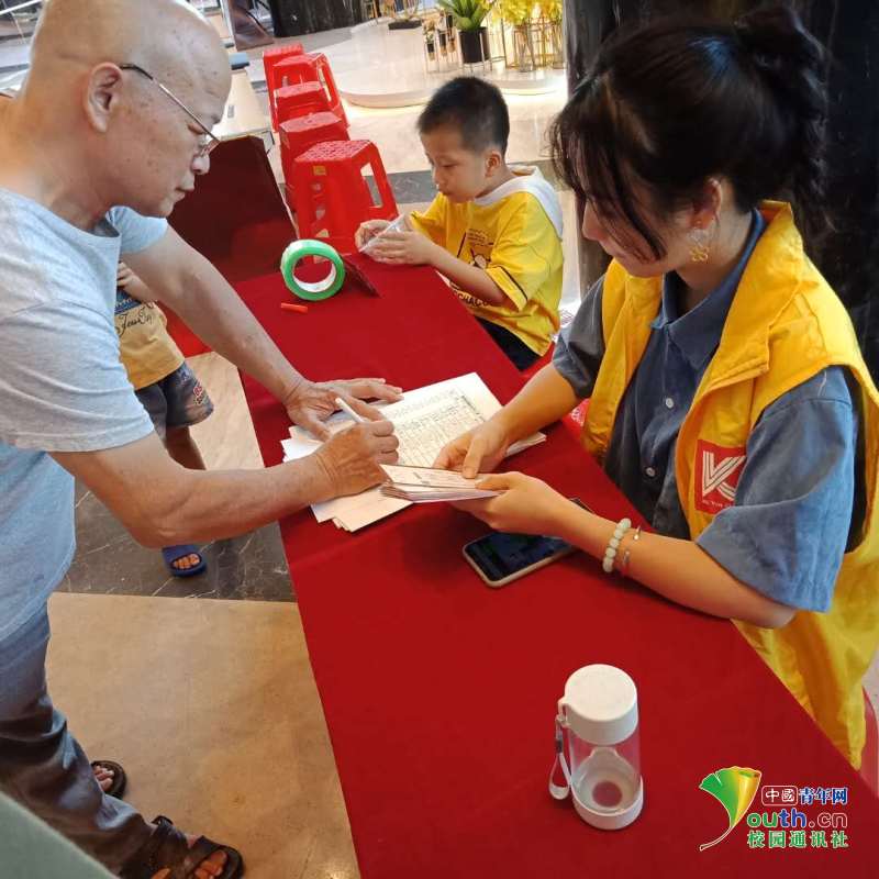 图片发自中青校园App(图为李文静在社区派发礼品券。 中国青年网通讯员 李文静 供图)