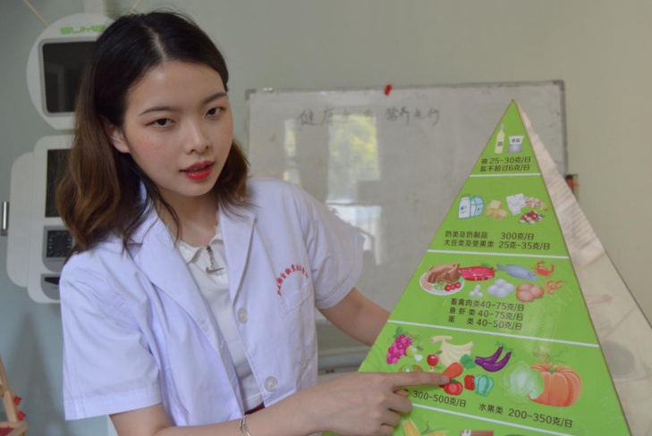 健康管理系18营养301黄慧玲结合自身专业,在三明永安市曹远镇埔头村乡镇活动中心为村民开展饮食健康宣教 福建卫生职业技术学院供图