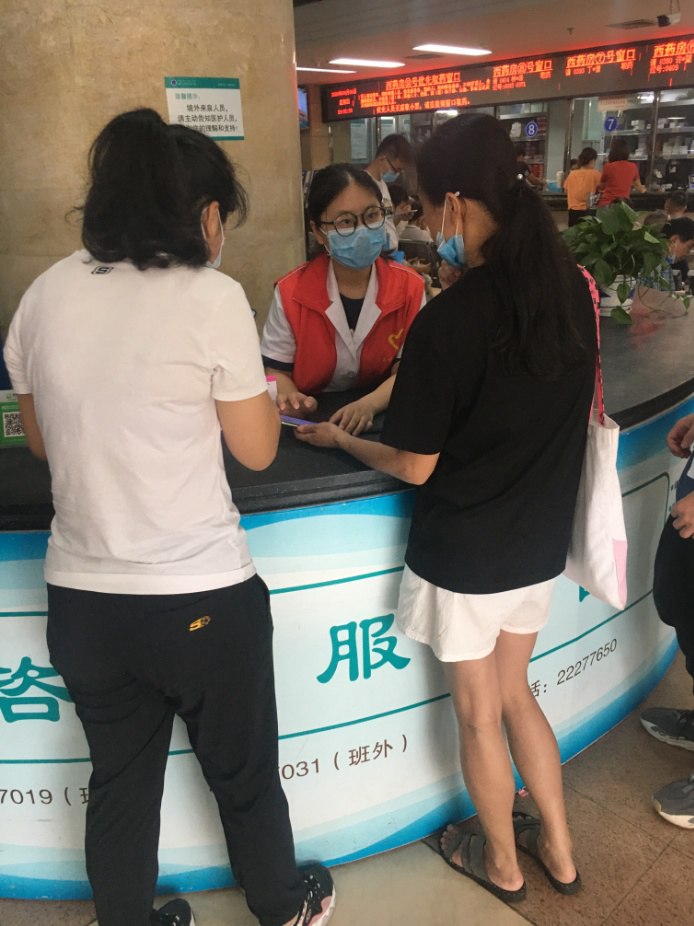 “看见电视新闻里那些奋战在一线的医护人员,我的内心充满了尊敬与感动。这群默默无闻的英雄在一线奋斗,有力控制了国内疫情。”19药学系305班黄琳雯说。今年7月,黄琳雯成为泉州市第一医院防疫志愿者,主要负责作为导诊台与各科室门诊的分诊人员,协助患者及家属操作自助机,引导他们用微信公众号自助预约挂号以及到院签到。