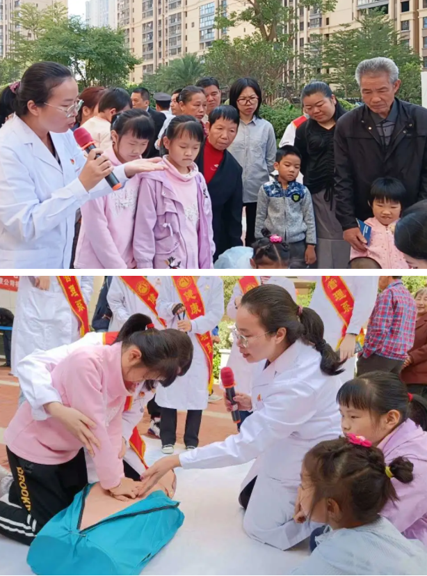 志愿者通过发放宣传单、老年人常见病知识有奖问答、健康咨询、八段锦示教、心肺复苏技能讲解等多种群众喜闻乐见的方式,将健康知识传递给社区老人和家属。