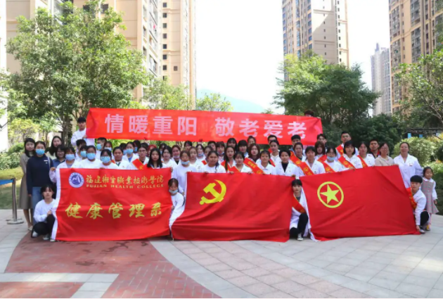 习近平总书记早在正定工作时就强调“尊老敬贤,绝不能只停留在口头上,而应实实在在地见之于行动。”在重阳老年节来临之际,为响应习近平总书记“尊老敬贤”的指示精神,福建卫生职业技术学院健康管理系第一党支部带领师生党员、入党积极分子、青年团员来到闽侯荆溪社区中铁城,以志愿者身份开展“情暖重阳 敬老爱老”为主题的美德教育课。