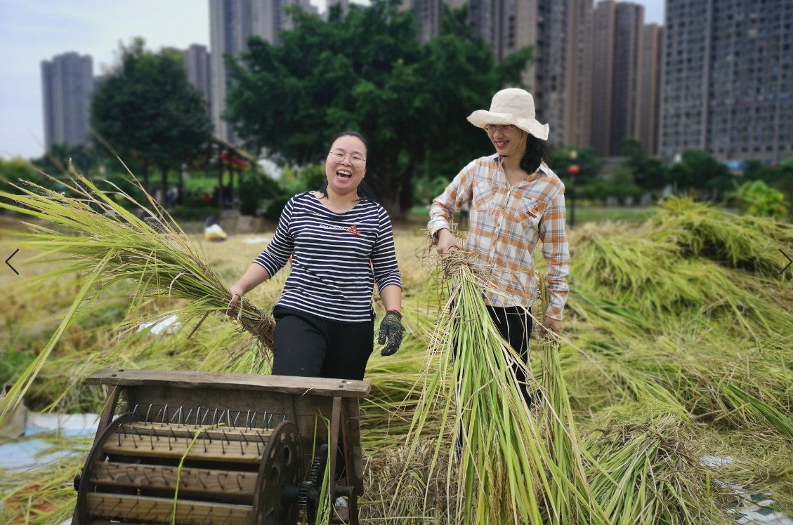希望的田野上,师生们挥动镰刀体验丰收的喜悦。分组比赛更让大家在快乐的氛围感悟“一粥一饭来之不易,爱粮节粮人人有责”。收割稻谷、打谷、筛谷收装后,师生自发到田里捡拾稻穗,把珍惜粮食、厉行节约落实在细节中。