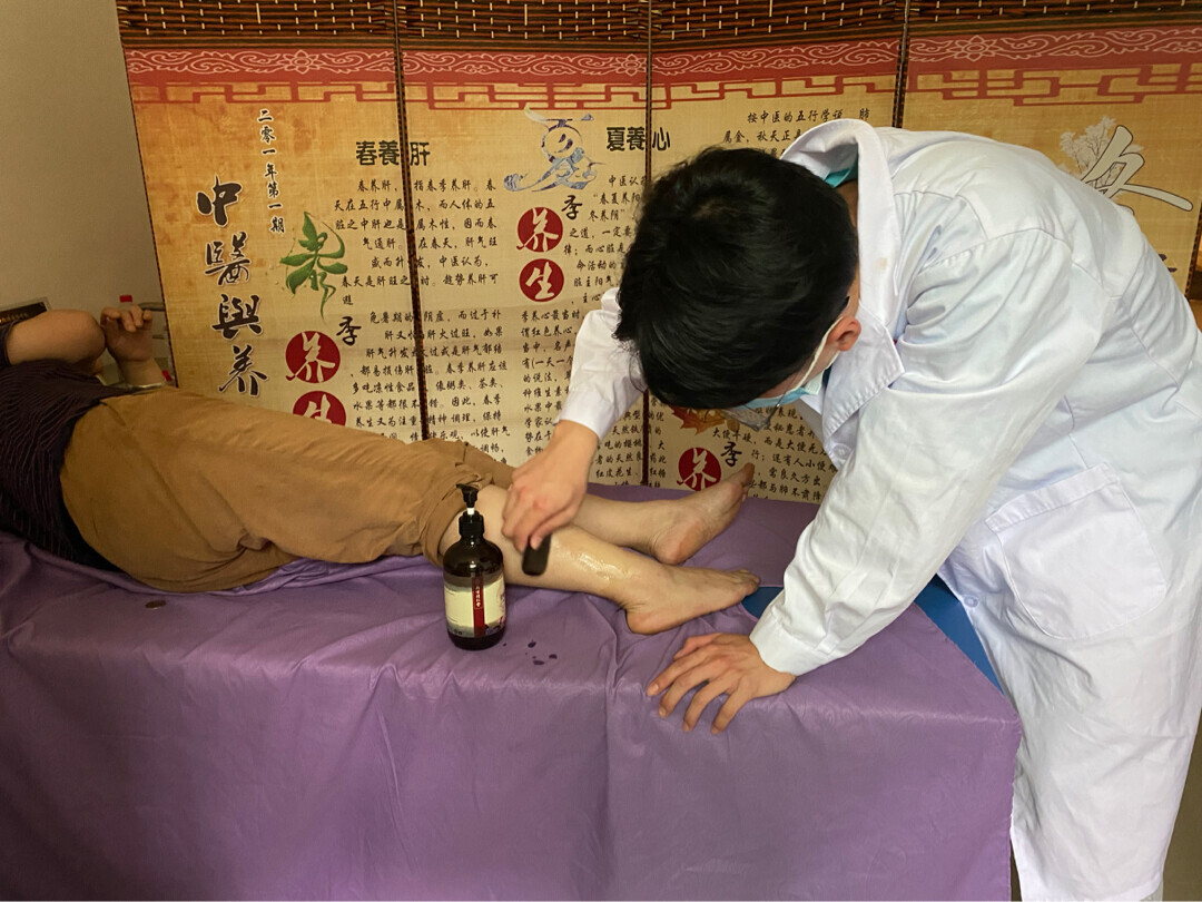 图为帮助村民刮痧,起到活血化淤,补中益气的作用。中国青年网通讯员 赵梦雅 摄
