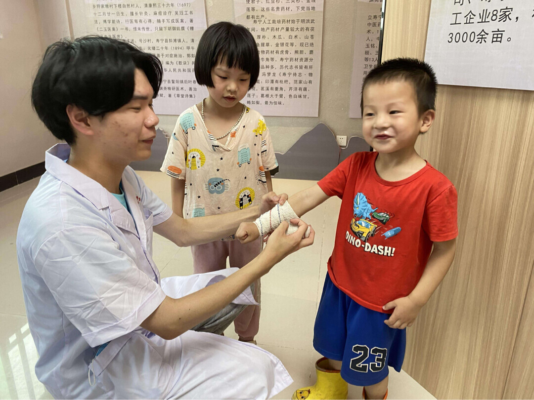中国青年网宁德7月25日电(通讯员 盖小宝)6月29日上午,为响应暑期三下乡实践活动,福建卫生职业技术学院“闽卫实践队”小分队在暑期社会实践期间奔赴福建省宁德市寿宁县下党乡开展以“喜迎二十大 永远跟党走 奋进新征程”为主题的社会实践活动。今日开展了中医推拿拔罐刮痧,测量血压,假人心肺复苏教学和创伤包扎教学以及慰问老党员的活动。此活动旨在帮助村民了解急救知识,以及通过义诊缓解村民的疲劳。
