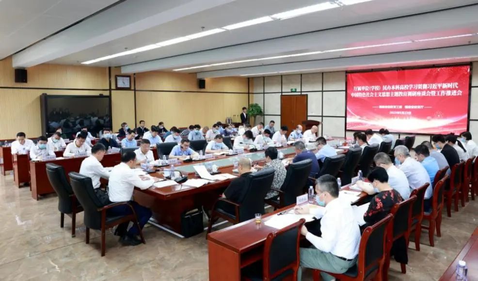 40家厅属单位(学校)、民办本科高校主要负责同志,委厅主题教育领导小组办公室各工作组主要负责人等参加会议。会前,与会人员实地调研阳光学院办学成果展厅,了解学院的发展历程、党建与思政建设、专业设置及科研成果。