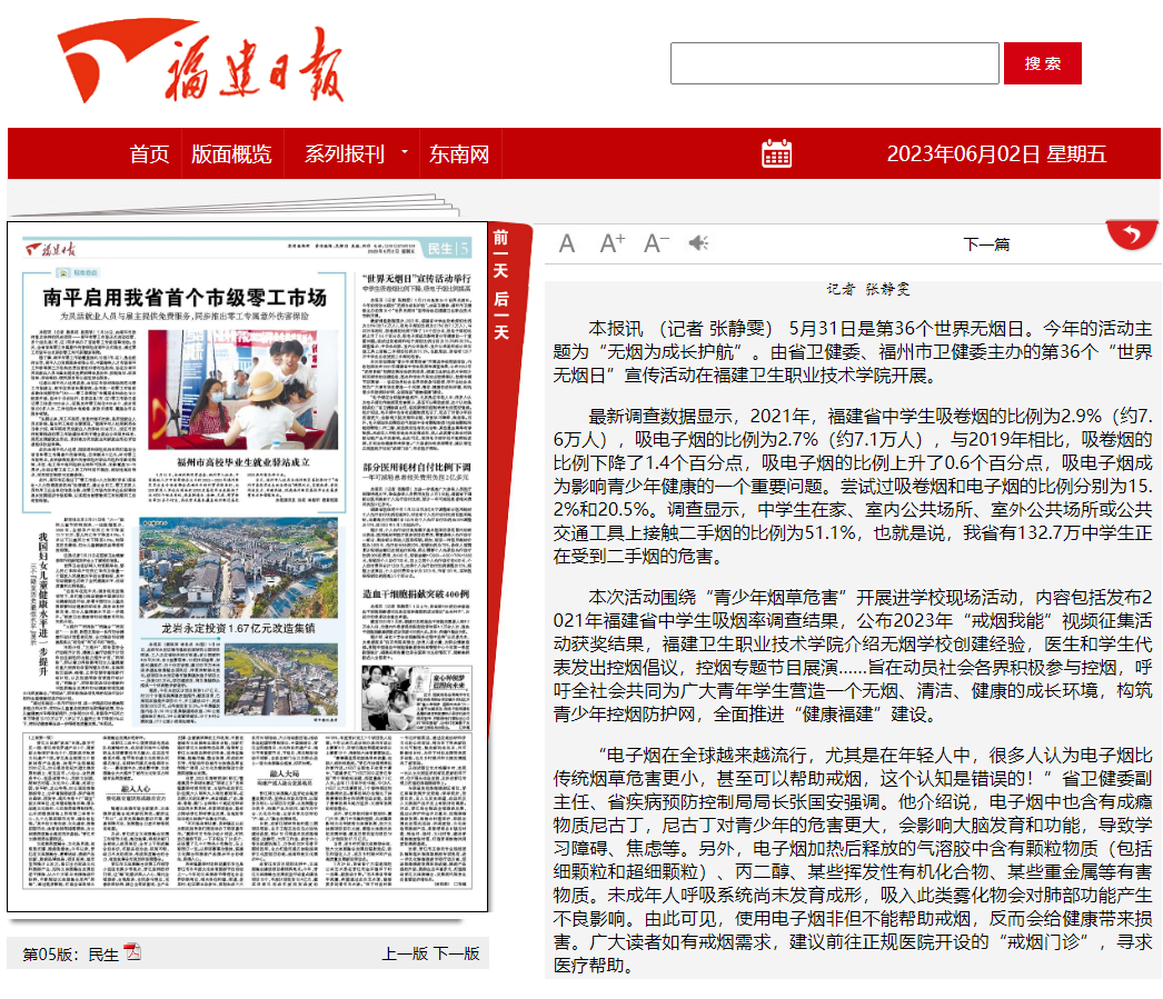 福州日报 2023年6月1日 链接:https://share.fznews.com.cn/pub/template/displayTemplate/news/newsDetail/159/428247.html?isShare=true