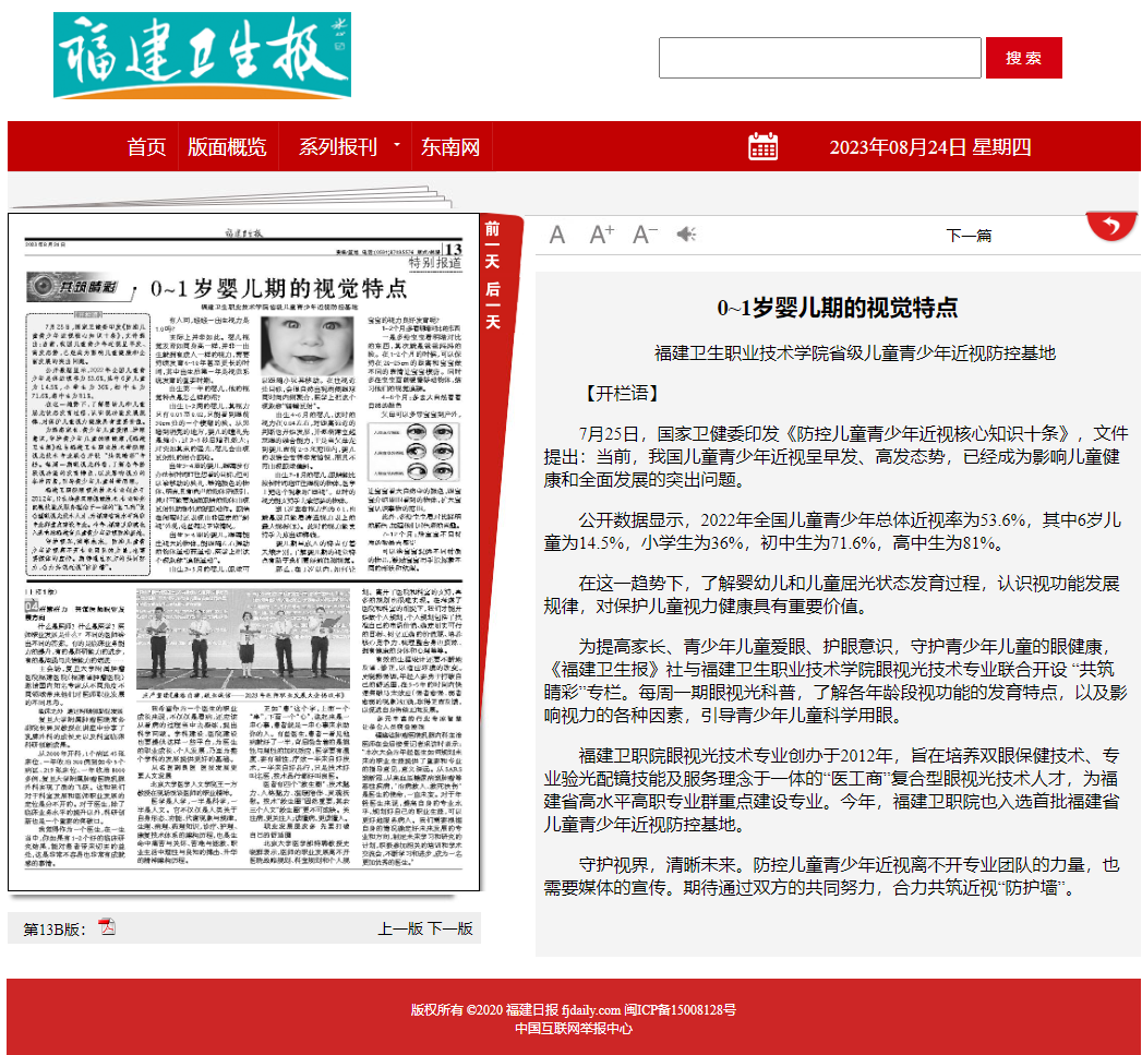 福建卫生报第13版 2023年8月24日 链接:https://fjwsb.fjdaily.com/pc/con/202308/24/content_299887.html