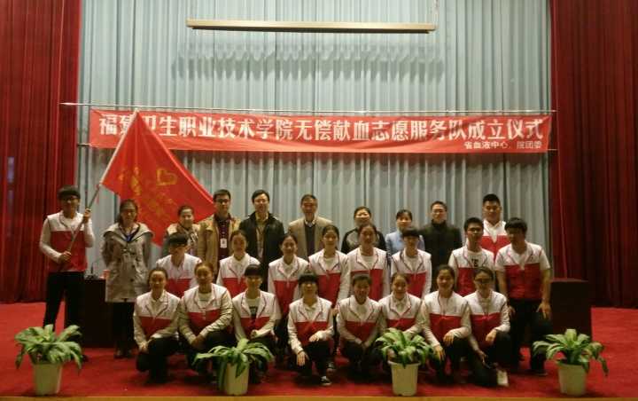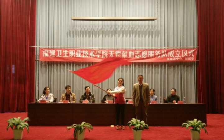 2016年3月9日,福建卫生职业技术学院无偿献血志愿服务队举行了成立仪式,这是福建省血液中心在高校成立的第四支无偿献血志愿服务队。福建卫生职业技术学院魏立娜副院长,省献血工作办公室副主任、省血液中心党委书记吴建忠参加了仪式。