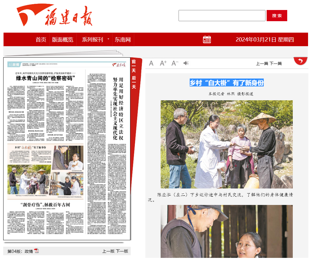 福建日报 2023年3月21日 第4版 链接:https://fjrb.fjdaily.com/pc/con/202403/21/content_351224.html