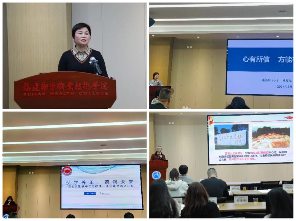 为深入贯彻习近平总书记在全国学校思想政治课教师座谈会上的重要讲话精神,高质量推进大中小学思政课一体化建设,把道理讲深、讲透、讲活,2024年3月21日,由福建卫生职业技术学院与闽侯县荆溪镇人民政府主办的大中小思政课一体化建设系列活动在厚德楼举行,共有13所学校和相关单位的82名人员参会。活动由福建卫生职业技术学院党委副书记李美华主持。