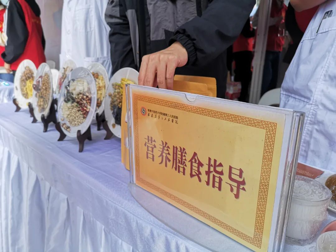 福建中医药大学附属第三人民医院带来了自主研发的茶饮、药膳等,以及糖尿病、肿瘤与营养宣传单。