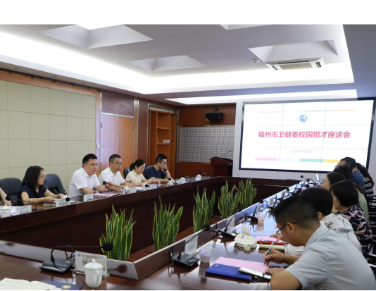 为进一步充实乡村医疗卫生人才队伍,做好2024年大学生乡村医生专项计划招聘工作,促进我市乡村医疗卫生体系健康发展,9月3日上午,福州市卫生健康委员会主任郭勇、副主任钟志华带领基卫处、人事处、福清市和长乐区有关人员赴福建卫生职业技术学院开展大学生乡村医生专项计划招聘座谈会。福建卫生职业技术学院副校长黄铭珊、实习实训中心、学生工作部、 医学院、护理学院、药学院、医学技术与工程学院、公共健康与卫生管理学院领导和有关工作人员参加了座谈。