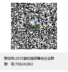 (六)各参会单位加入2025届校园招聘会企业QQ群(群号:708241802,入群请备注:企业名称),可扫码入群,方便相关事宜通知。