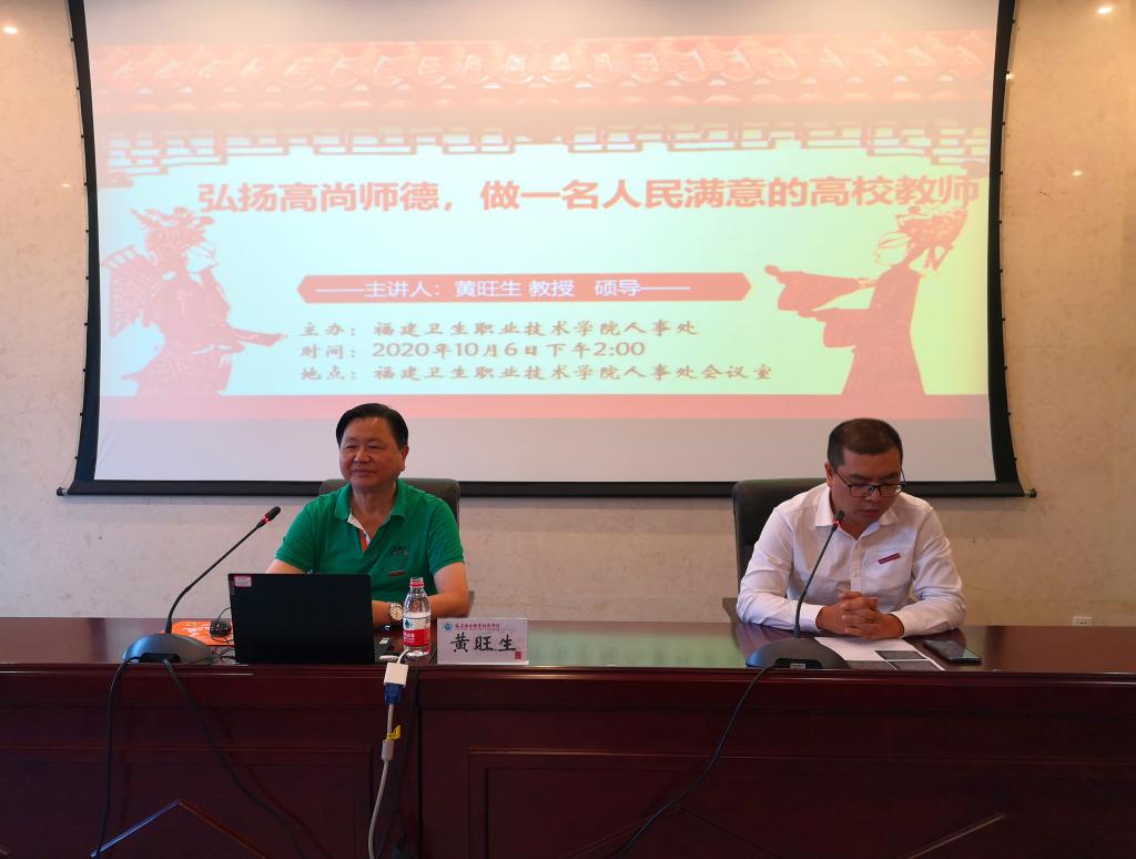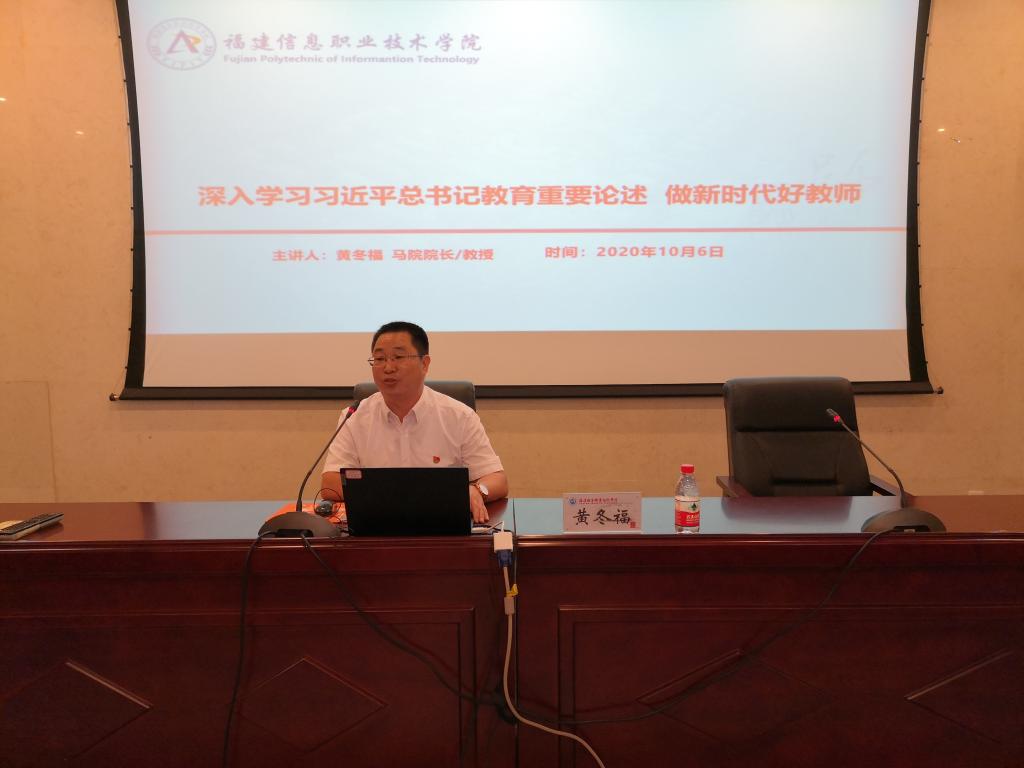 为进一步加强我院师德师风建设,引导教师以德立身、以德立学、以德施教,更好担当起学生健康成长指导者和引路人责任,学院于10月6日至7日举办为期两天的师德师风系列专题讲座。先后邀请了福建信息职业技术学院马克思主义学院院长黄冬福教授,福建农林大学黄旺生教授和福建师范大学黄仁贤教授开展讲座。全体新入职教师及青年教师代表聆听讲座。