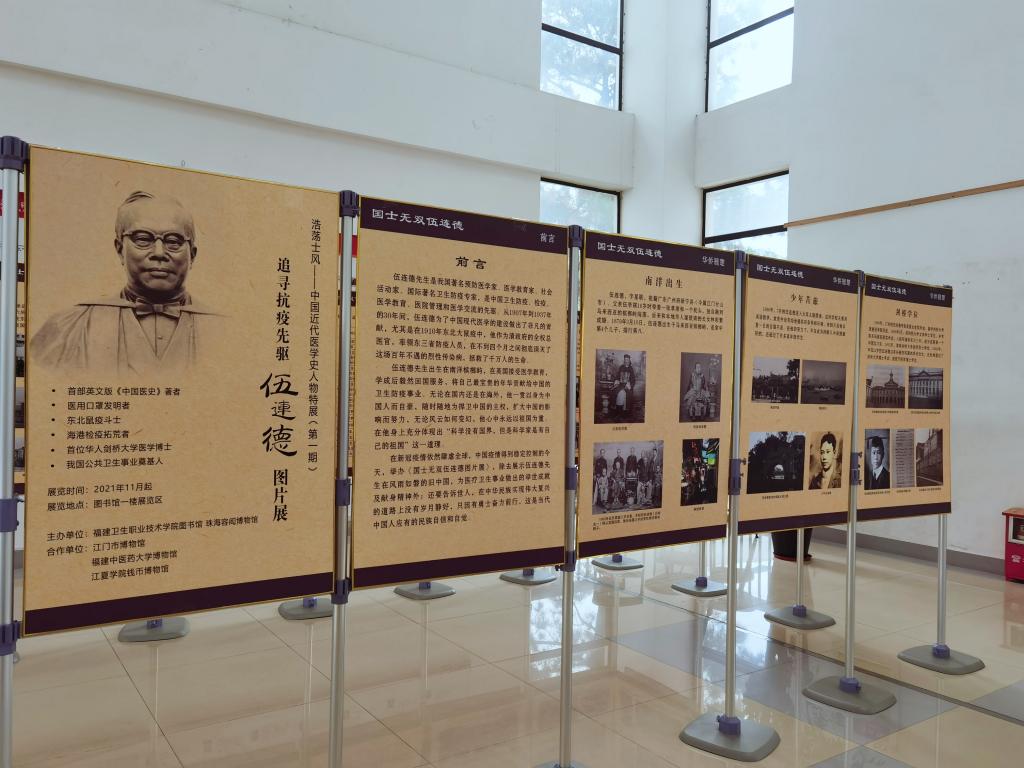 11月19日,我校图书馆联合福建中医药大学博物馆、江夏学院钱币博物馆、珠海市香洲区容闳博物馆、江门市博物馆举办“浩荡士风——中国近代医学史人物特展:追寻抗疫先驱伍连德”图片展。