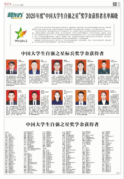为寻访青年榜样,为当代大学生树立一批可亲可敬可信可学的榜样。由共青团中央、全国学联指导,中国青年报社和新东方教育科技集团联合开展2020年度“中国大学生自强之星”奖学金推报活动。经学校推荐、省级初评和全国评审等环节,我校王林慧同学从众多评选对象中脱颖而出,荣获2020年度“中国大学生自强之星”奖学金。
