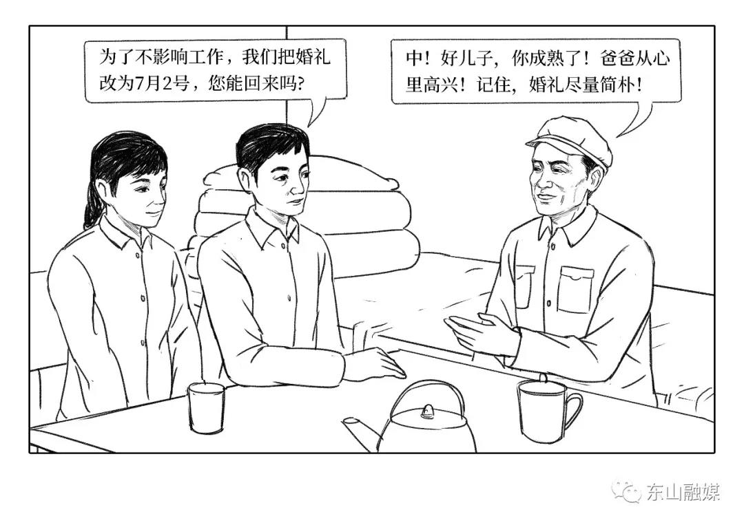 临近婚期,他们才把结婚的喜事禀报母亲。母亲非常高兴。可是当他们把办喜事的日期告诉父亲谷文昌时,父亲说:“7月1日结婚的想法很好!可是我这里太忙了,7月1日没法回家。”谷豫闽深知父亲的性格,叫他放下手中工作回家是不可能的。“这样吧”,谷豫闽跟父亲说:“我们把婚礼改为7月2号,您能回来吗?”父亲显得非常激动:“中!好儿子,你成熟了!爸爸从心里高兴!记住,婚礼尽量简朴!”