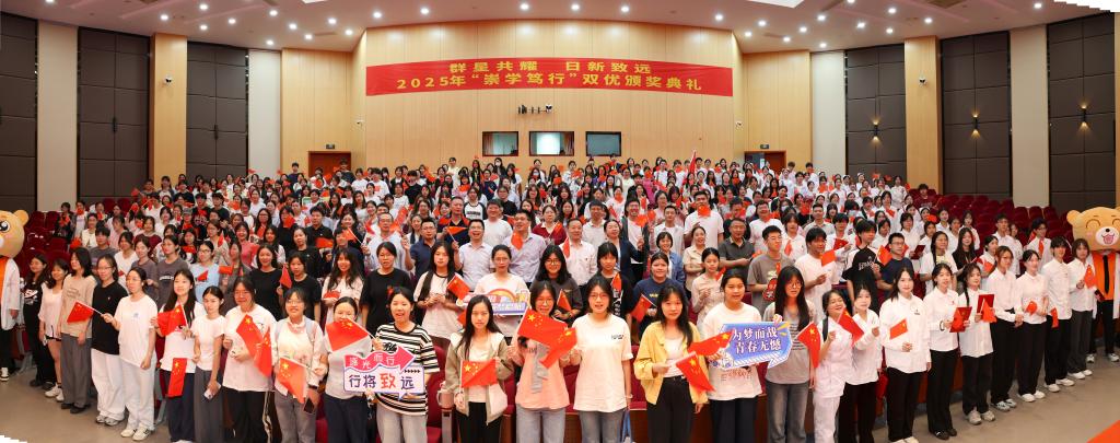 灯光渐暗,快门声起。2025年“崇学笃行”双优颁奖典礼在全场灿烂的笑颜中圆满收官。四百余名师生并肩而立,镜头捕捉的不仅是获奖者的荣光,更是闽卫学子“崇学笃行”的精神底色。这张满载青春热忱的合影,将成为校园文化建设的珍贵切片,见证着集体奋斗的浪漫。正如校长寄语所言:“真正的‘卷’,是让彼此的光芒互相照亮。”此刻的星光,终将汇成照亮未来的银河。