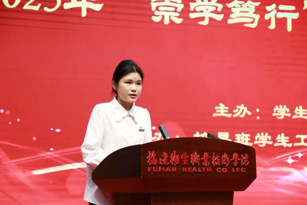 学生工作部部长陈俊颖展开素笺,墨香未散的表彰决定如一道星轨划过会场。易班“十佳班级”与“21天学习打卡”获奖名单被一一“唱响”,每个音节都坠落在仁心湖的涟漪里。原来崇学厅的晚风,也会为青春的理想驻足。