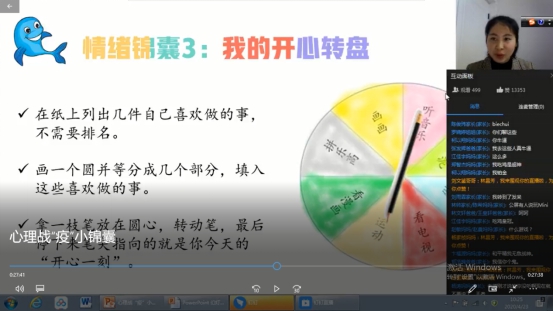 经过线下充分的准备,4月23日上午,夏雪梅老师准时上线钉钉直播课堂,给白沙中心小学四至六年级的同学们带来了一堂充满趣味性的心理课——心理战“疫”小锦囊,本次课程共吸引529位同学观看学习。