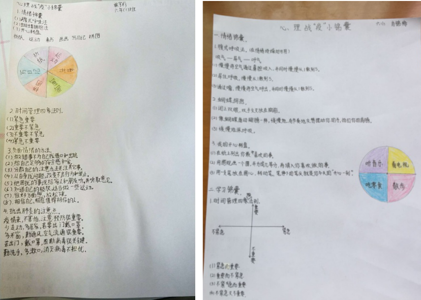 受新冠肺炎疫情的影响,学生长期居家学习。学生所处的成长环境和接受教育形式的改变,给部分学生的生活和学习带来了很大影响。为引导学生们正视这种变化,化被动为主动,摆正学习心态,夏雪梅老师精心准备了缓解情绪的小锦囊:腹式呼吸、蝴蝶拍和开心转盘。简单实用易操作的缓解情绪方法,在同学们的亲自体验中变得生动而有趣,烦躁和愤怒的坏情绪也随之灰飞烟灭。